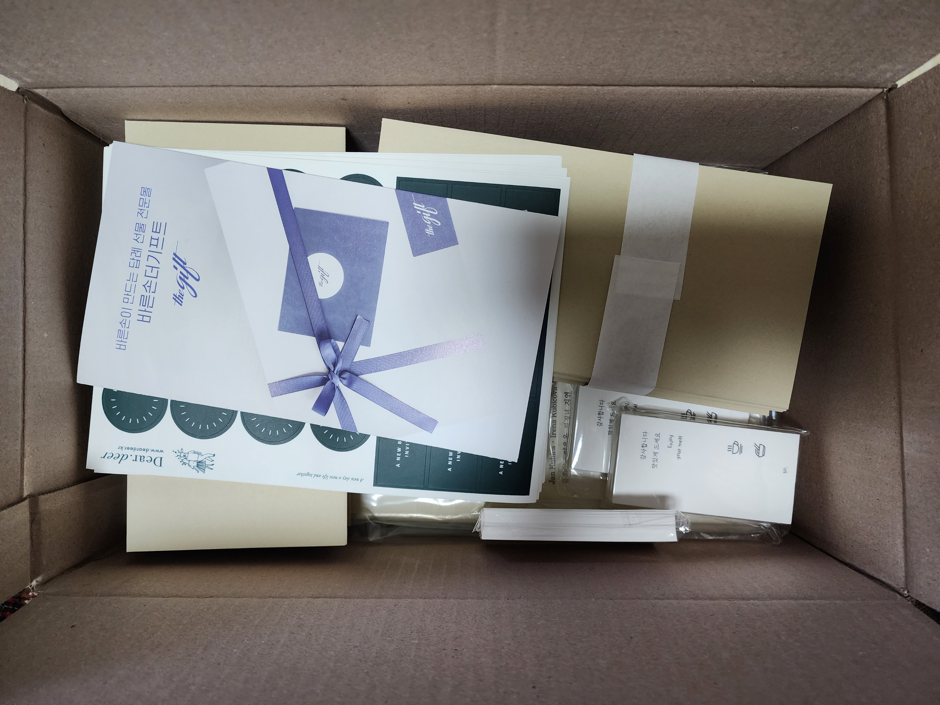 사실 이걸 다 접어서 스티커까지 붙여서 보내주시기도 하는데 그럼 장당 200원인가가 추가되어서;
